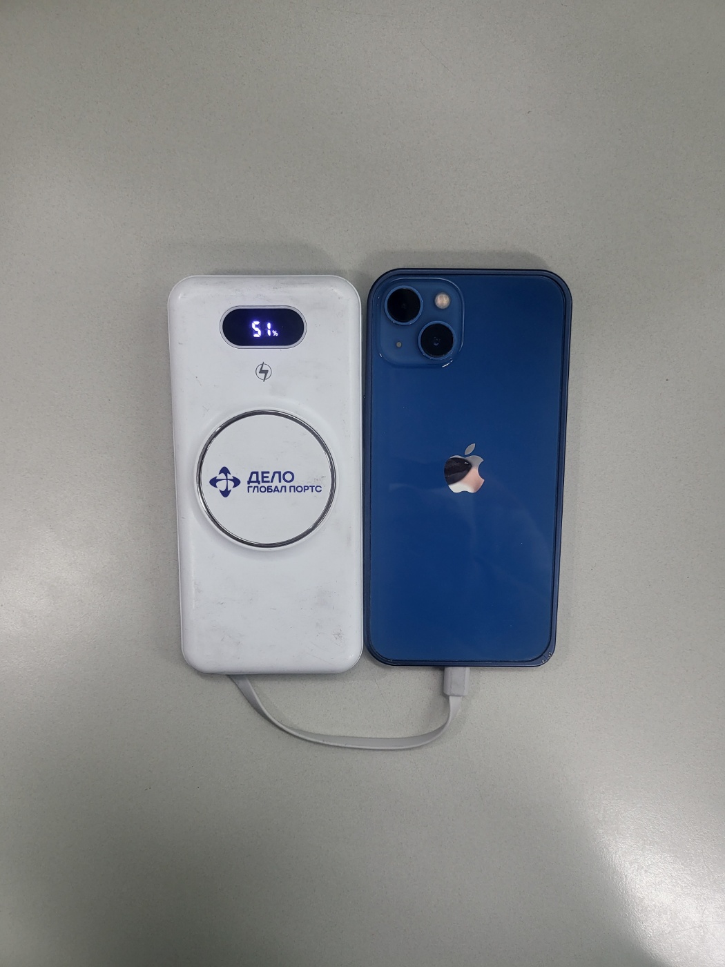 군청색아이폰과충전기